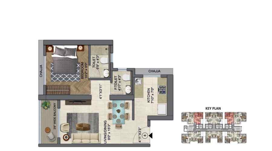 | 1 bhk | 355 - 419 Sq.ft. | 57 Lakhs all inc. | |